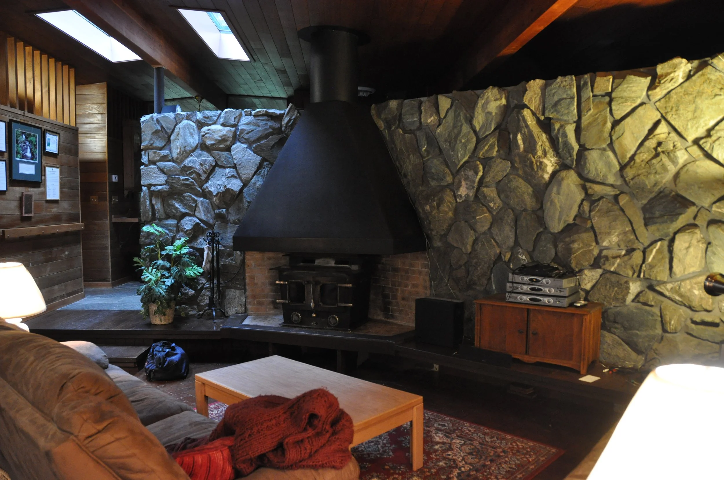 Kees house in Issaquah is one of these gems and resonates with the history of the Pacific Northwest both in the structure and the legacy of the land. Ruth Kees designed the house and started building with her husband Dan in 1957. They worked for 6 years to create their dream home, and ended up with a masterpiece. It is modeled after the Frank Lloyd Wright hexagonal Usonian design, so the rooms have 60 and 120 degree angles which flow beautifully. There is floor to ceiling glass looking onto a lush ravine with a creek and stunning extensive gardens. Walls of hand harvested blue stone shot through with crystal are continuous from the interior to the exterior, and hold the heat created by a central wood stove. The floor is of locally milled, 3 inch thick end block fir, and the walls and ceilings are clear heartwood cedar.